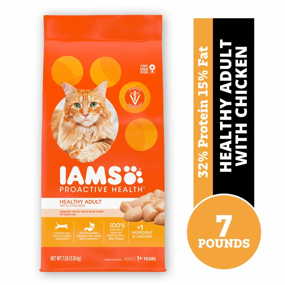 Help your cat feel her best every day with IAMS PROACTIVE HEALTH Adult Healthy Dry Cat Food with Chicken Cat Kibble. This recipe is crafted to support healthy cats’ bodies and provide healthy energy for daily adventures. Real chicken is the very first ingredient in this kibble, plus prebiotics to support digestive health and omega-6 and omega-3 fatty acids to support healthy skin and coat. The crunchy kibble texture not only tastes great, but helps reduce plaque buildup! Great for indoor or outdoor cats.