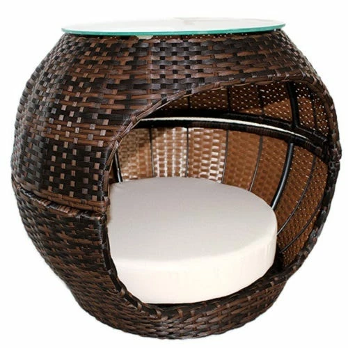 Hand woven rattan brings elegance to your home while giving comfort to your pet. The Rattan Hide-Away Pet Bed by Iconic Pet is a perfect indoor or outdoor hideaway for your pet while doubling as a side table. The partially enclosed space gives your furry companion privacy to snooze the day away. Add a top cover for a place to set drinks or keep it open for a spacious living area for your pet. The sand colored, polyester cushion pairs well with any home decor and is machine washable. The rich UV-inhibitors coated to each string of the Rattan minimizes flaking and corrosion due to outdoor use. This durable bed is constructed for small to medium sized cats or dogs.
