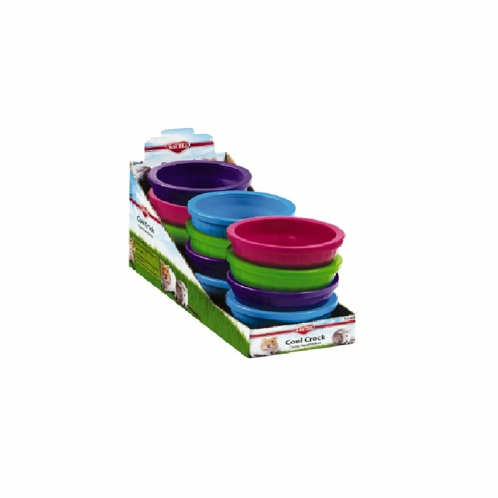Kaytee Cool Crock, the ultimate value priced food bowl. Made of durable plastic that is easy to clean. Available in an 12 bowl assortment of four fashionable colors in a full color display box.