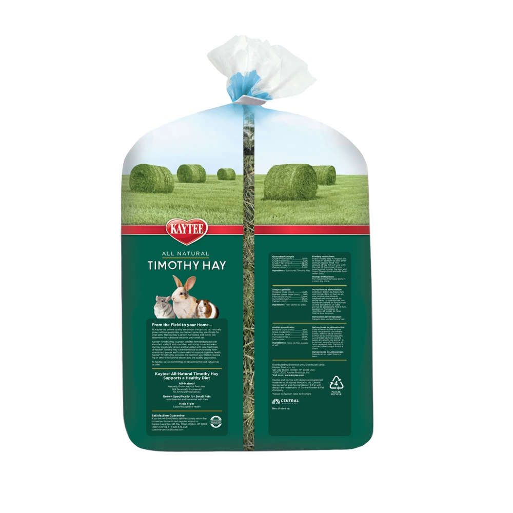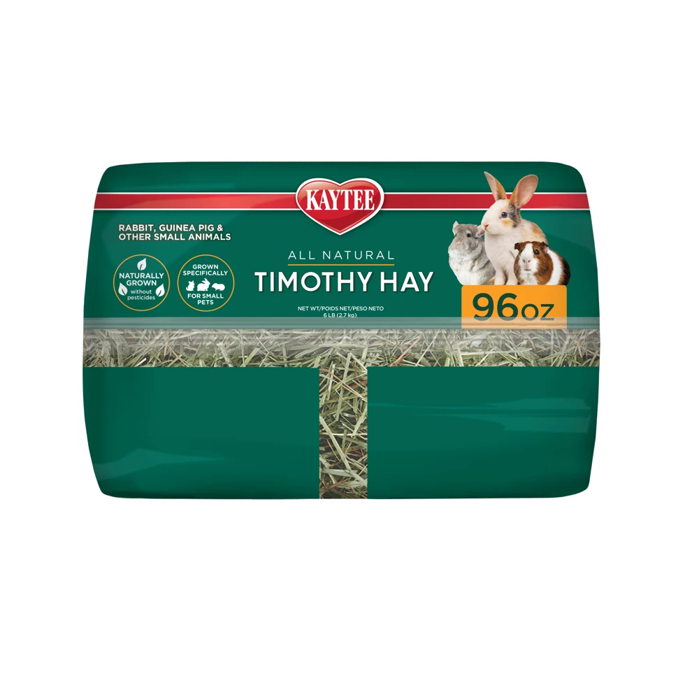 Kaytee Timothy Hay is a natural product with no preservatives or additives, and because timothy hay is lower in calcium, it may decrease the likelihood of urinary tract problems.