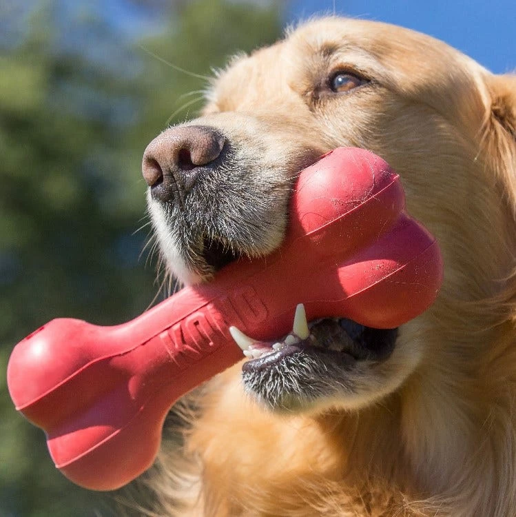 - Durable natural KONG Rubber, bone shaped for chewing satisfaction