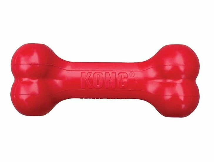 The KONG Goodie Bone toy engages dogs that delight in chew sessions. Made from the KONG Classic unique natural red rubber formula, this bone features the patented Goodie Grippers that turn this entertaining toy into a fun treat dispensing challenge that can be stuffed with your dog’s favorite kibble. Want to extend the chew session? Stuff with KONG Snacks and entice with a bit of KONG Easy Treat.