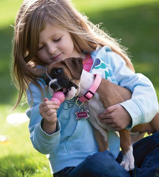 The Puppy KONG dog toy is customized for a growing puppy’s baby teeth, the unique, natural rubber formula is the most gentle within the KONG rubber toy line. Designed to meet the needs of a puppy’s 28-baby teeth, it helps teach appropriate chewing behavior while offering enrichment and satisfying a younger pup’s instinctual needs while the erratic bounce make it ideal for those pups that just want to play. A stuffed Puppy KONG occupies busy little ones while allowing pet parents the freedom to attend to their unique needs. Want to make crate training easier or extend play time? Be sure to stuff with puppy kibble and a dash of peanut butter. Add to the fun by including KONG Puppy Snacks and top with KONG Puppy Easy Treat.