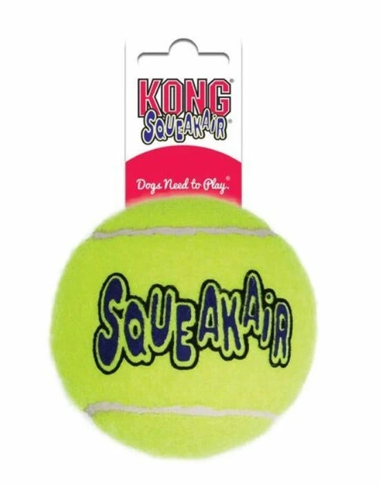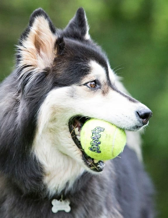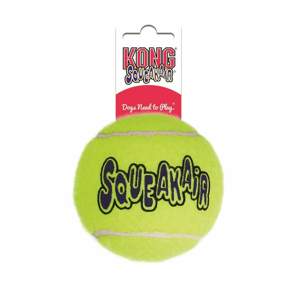 The KONG SqueakAir Ball combines two classic dog toys – the tennis ball and the squeaker toy – to create the perfect fetch toy. Our durable, high-quality SqueakAir Tennis Ball will not wear down your dog’s teeth. It’s made with a special non-abrasive felt.
