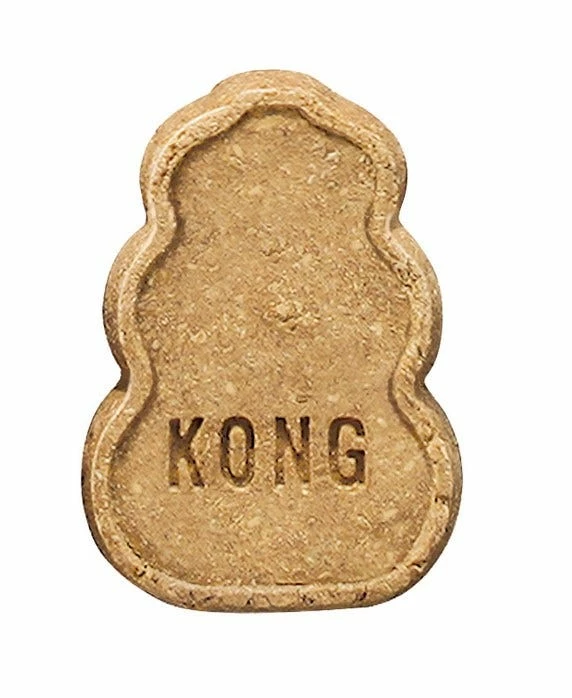 Ingredients: Oat Flour, Rye Flour, Sorghum Flour, Chicken, Salmon, Sunflower Oil, Blueberries, Turmeric, Mixed Tocopherols. Squeeze bottom of KONG to create oval – shaped opening. Insert large end only of KONG SNACKS into toy. Leaving 2 smaller segments exposed encourages your dog to nibble off the protruding end and challenges them to retrieve the remaining portion. For an extra – special treat, crumble KONG SNACKS, mix with KONG Easy Treat (paste), apply to inside of KONG Toy, and freeze.
