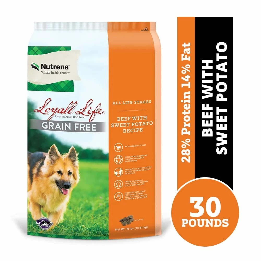 Loyall Life® Grain Free All Life Stages Beef with Sweet Potato Recipe is a specially formulated nutrition for families with dogs of different ages and sizes. It features beef as the #1 ingredient for a tasty, higher-protein diet and includes superfoods like pumpkin, spinach, and blueberries. As a wholesome, grain-free option, it’s always free of corn, wheat, soy, and rice.