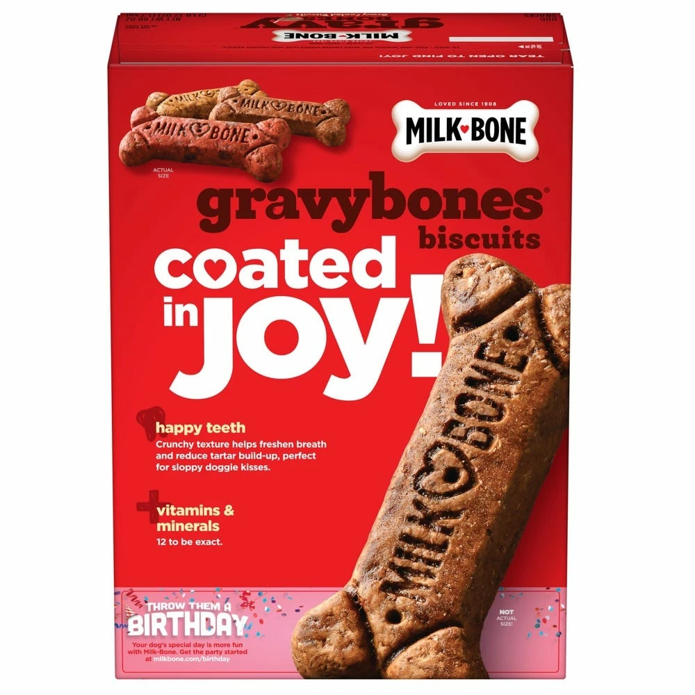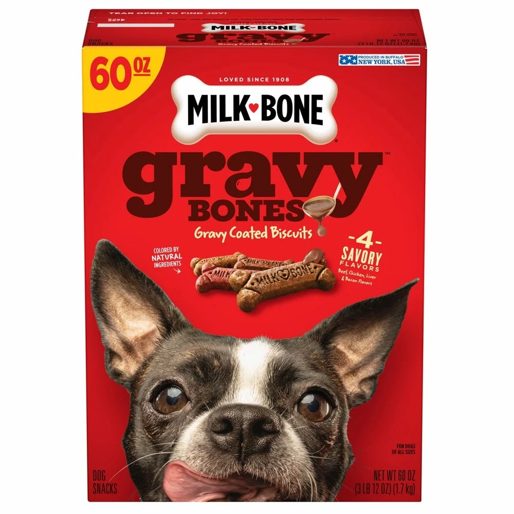 For meat-loving pups, nothing smells better than catching a whiff of Milk-Bone GravyBones Small Dog Biscuits as you open the bag for treat time. These gravy-basted biscuits are filled with wholesome goodness and come in a variety of yummy, meaty flavors like beef, bacon, chicken and liver. While your dog is crunching his tasty bone, it’s helping to freshen his breath, clean his teeth and remove plaque and tartar buildup. Beyond the dental benefits, this functional treat helps keep your dog at his best with 12 essential vitamins and minerals. It’s the ultimate flavor indulgence that’s also good for your dog’s health.
