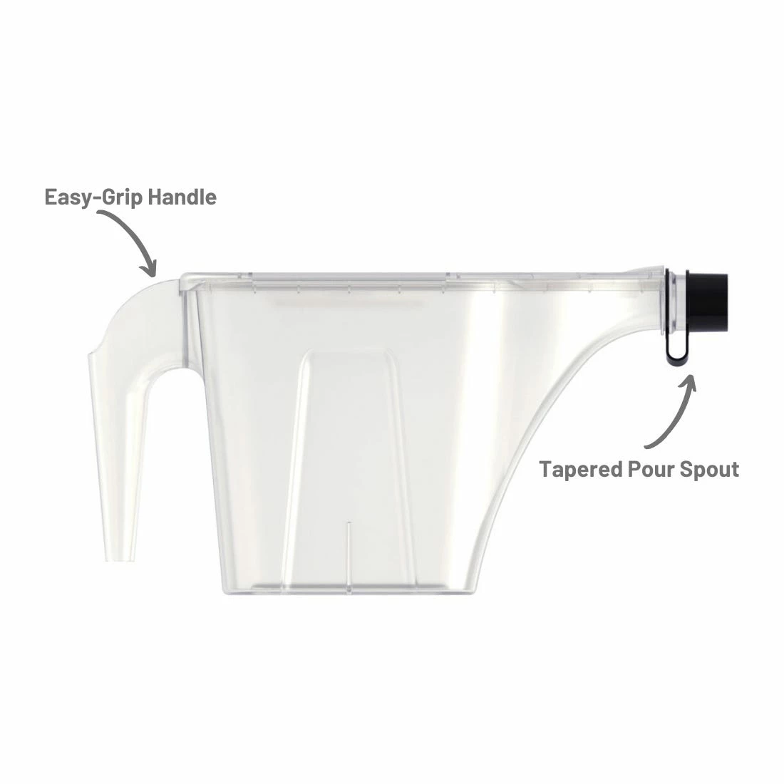 - Tapered pour spout easily fills feeders with no spillage or waste