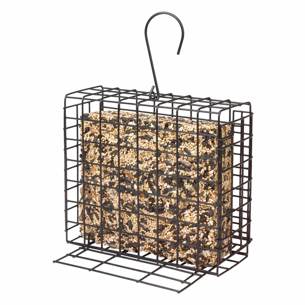 Offer healthy treats to a variety of birds with the More Birds® Grand Seed & Suet Cake Feeder. Its cage holds 1 suet cake or small seed cakes and features an easy-open, double-locking closure system. The built-in perch provides feeding space to perching birds, while its cage grid is designed with clinging birds in mind. And it’s not just for suet & seed cakes! It’s also perfect for nesting materials in spring and oranges in summer. Constructed of solid steel with a weather resistant, black powder-coated finish, the Grand Seed & Suet Cake Feeder is a quality bird feeder that a variety of birds will love.