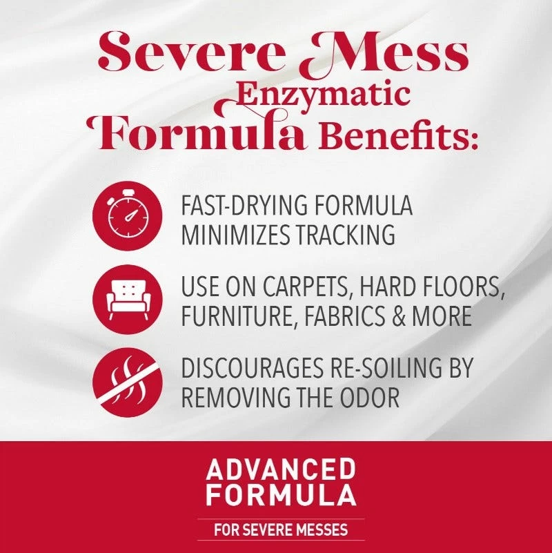 - Tough on cat urine, feces, vomit, drool and other organic stains and odors.