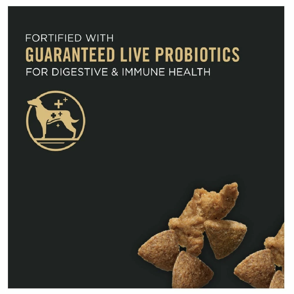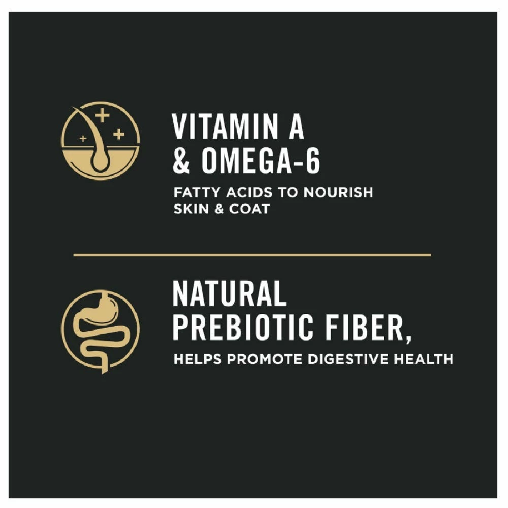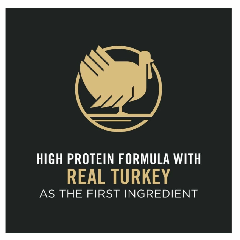 Give your pooch a meal that is packed with both flavor and nutrition with Purina Pro Plan Complete Essentials Shredded Blend Turkey & Rice High Protein Dry Dog Food. This recipe features kibble and soft, shredded bits so that your pooch can have both crunchy and chewy food in one mouthful. Real turkey is the main ingredient in this protein-rich recipe. It also contains vitamin A and sunflower oil to promote skin and coat health. Live probiotics are included to support digestive health, and prebiotic fiber promotes beneficial bacteria in the intestines. Plus, you can feel good knowing that this recipe is free of artificial colors and flavors. Bone appétit!