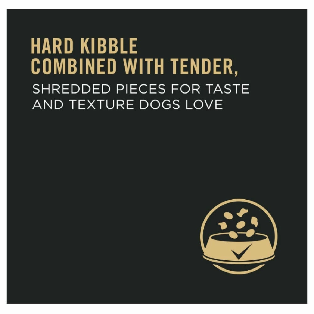 - Your pooch will go head-over-paws for the flavor and texture of crunchy kibble combined with soft shredded bits