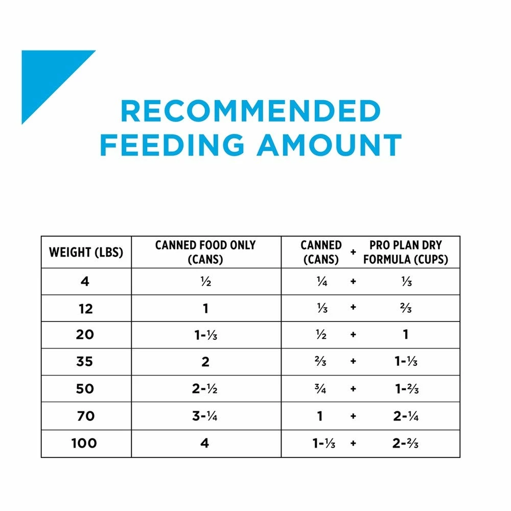 | Dog’s Weight (lbs.) | Canned Food Only (Cans) | Canned (Cans) + Pro Plan Dry Formula (Cups) |