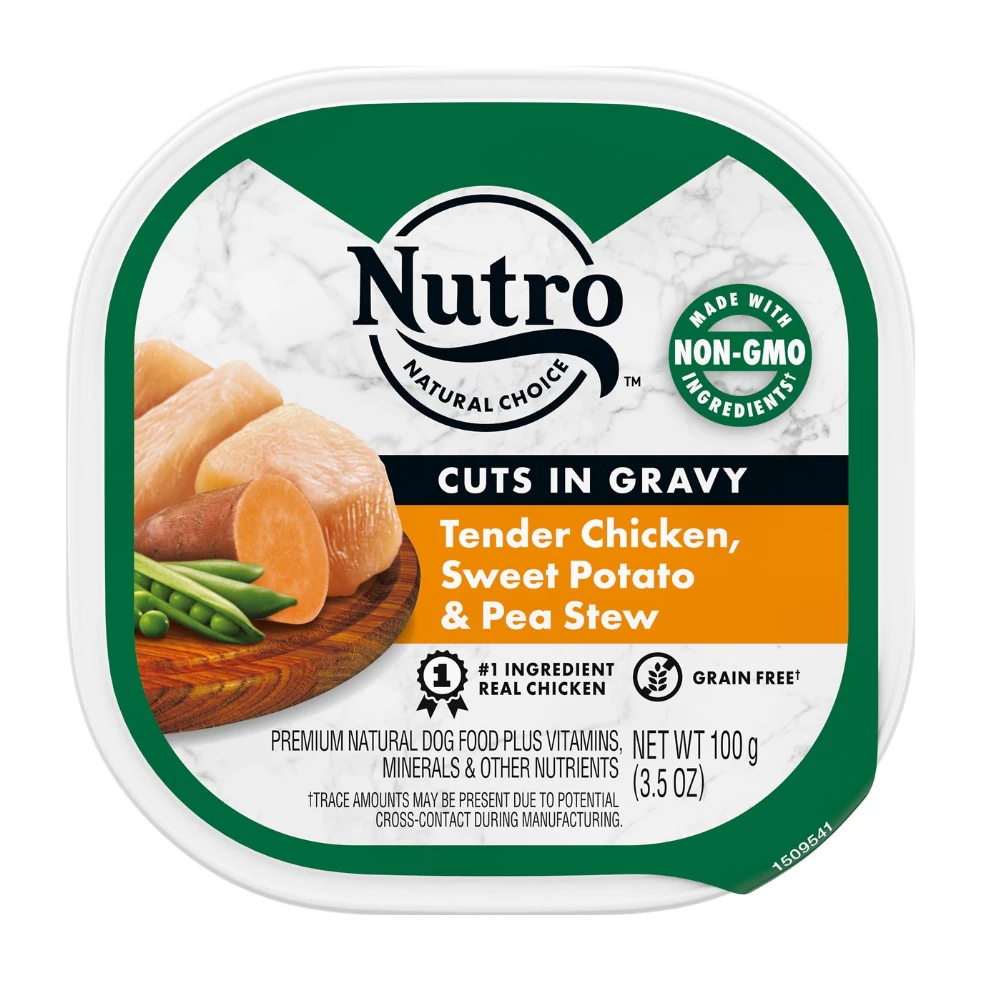 Watch your dog drool with delight over these Nutro Grain-Free Chicken, Sweet Potato & Pea Stew dog food trays. This premium, grain free wet dog food is full of nutrients and flavor that dogs—big and small—go crazy over. Each high-protein meal is balanced with vitamins and minerals and crafted with real chicken as the very first ingredient. Plus, with Nutro, you can feed your pal with confidence knowing that every ingredient is carefully sourced from a trusted network of farmers and suppliers and is 100% free of chicken by-product meal, corn, soy, wheat, artificial colors, flavors or preservatives. Give your pal the nutrition he deserves and the taste he loves with Nutro.