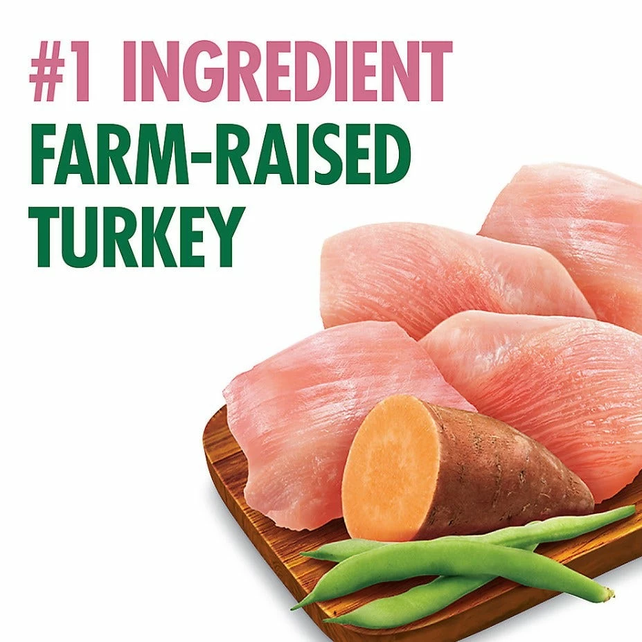 Your dog will come running when they hear you open a can of NUTRO PREMIUM LOAF Healthy Turkey, Sweet Potato & Green Bean Recipe. Farm-raised turkey is the first ingredient in this delicious wet dog food recipe, and it’s rich in nutrients and full of flavor that dogs big and small go crazy for.