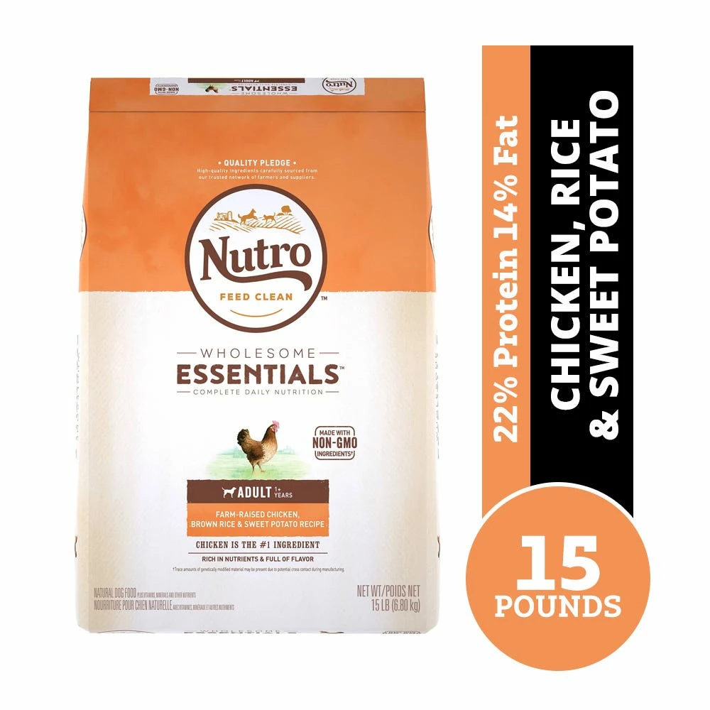 Give your pet the wholesome ingredients they love with NUTRO NATURAL CHOICE Dry Dog Food recipes. Made for dogs ages 1 year and older, this dry food provides essential antioxidants for healthy immunity and natural fiber for healthy digestion. It’s formulated with omega-3 and -6 fatty acids to help give your dog healthy skin and a soft, beautifully shiny coat. As part of the NUTRO FEED CLEAN philosophy, this delicious chicken and brown rice recipe starts with a high-quality protein source as the 1st ingredient and is made with real, recognizable ingredients sourced from trusted farmers and suppliers. Plus, it’s made with non-GMO ingredients* and has no chicken by-product meal, corn, wheat, or soy*. So you can feel good feeding your dog recipes that are rich in nutrients and full of flavor. * Trace amounts may be present due to potential cross-contact during manufacturing.
