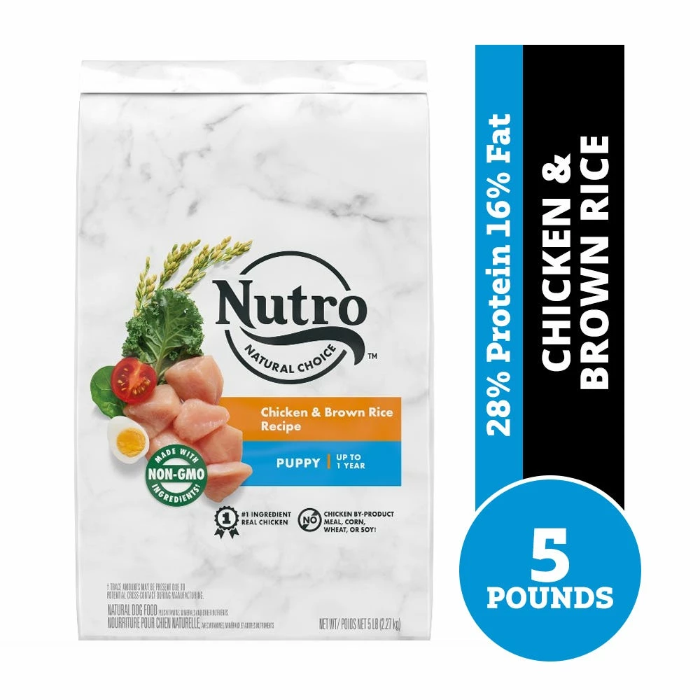 Give your pet the wholesome ingredients they love with NUTRO™ NATURAL CHOICE™ Dry Dog Food recipes. Made for puppies up to 1 year old, this dry food helps supports brain and eye development with omega-3 fatty acids like DHA. It helps build strong bones and joints with calcium and it helps support healthy immunity with essential antioxidants. As part of the NUTRO™ FEED CLEAN™ philosophy, this delicious chicken and brown rice recipe starts with a high-quality protein source as the 1st ingredient and is made with real, recognizable ingredients sourced from trusted farmers and suppliers. Plus, it’s made with non-GMO ingredients* and has no chicken by-product meal, corn, wheat, or soy*. So you can feel good feeding your dog recipes that are rich in nutrients and full of flavor.