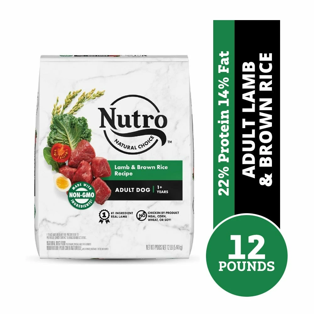 Choose to give your paw-tner a natural, nutrient-packed meal with Nutro Natural Choice Adult Dry Dog Food, Lamb & Brown Rice Recipe Dog Kibble. This dry food for adult dogs is specially formulated to provide both nutrition and flavor. Real lamb is at the very top of the ingredient list for a high-quality protein source. Omega-3 and omega-6 fatty acids support healthy skin and a gorgeous, shiny coat, while essential antioxidants support immunity and natural fiber supports good digestion. Plus, this food is made with non-GMO ingredients and you won’t find any chicken by-product meal, corn, wheat or soy here!