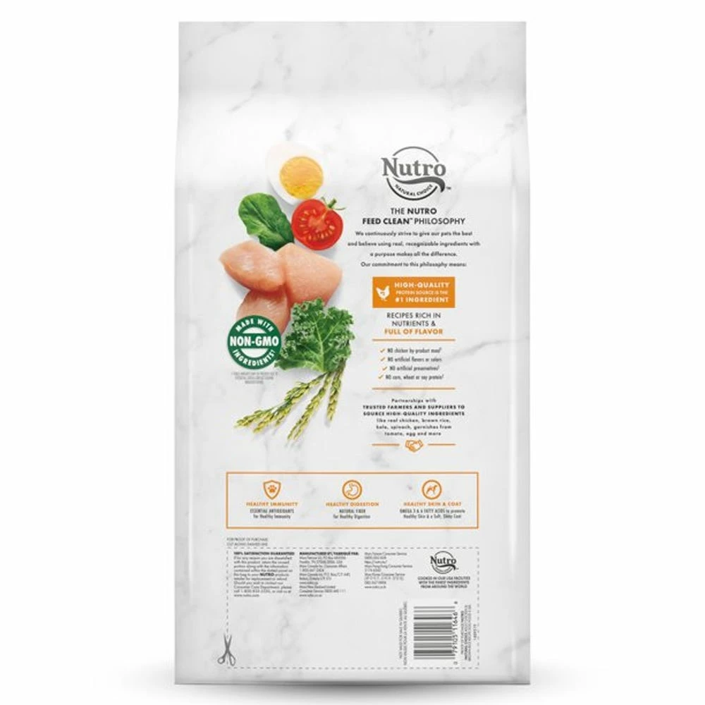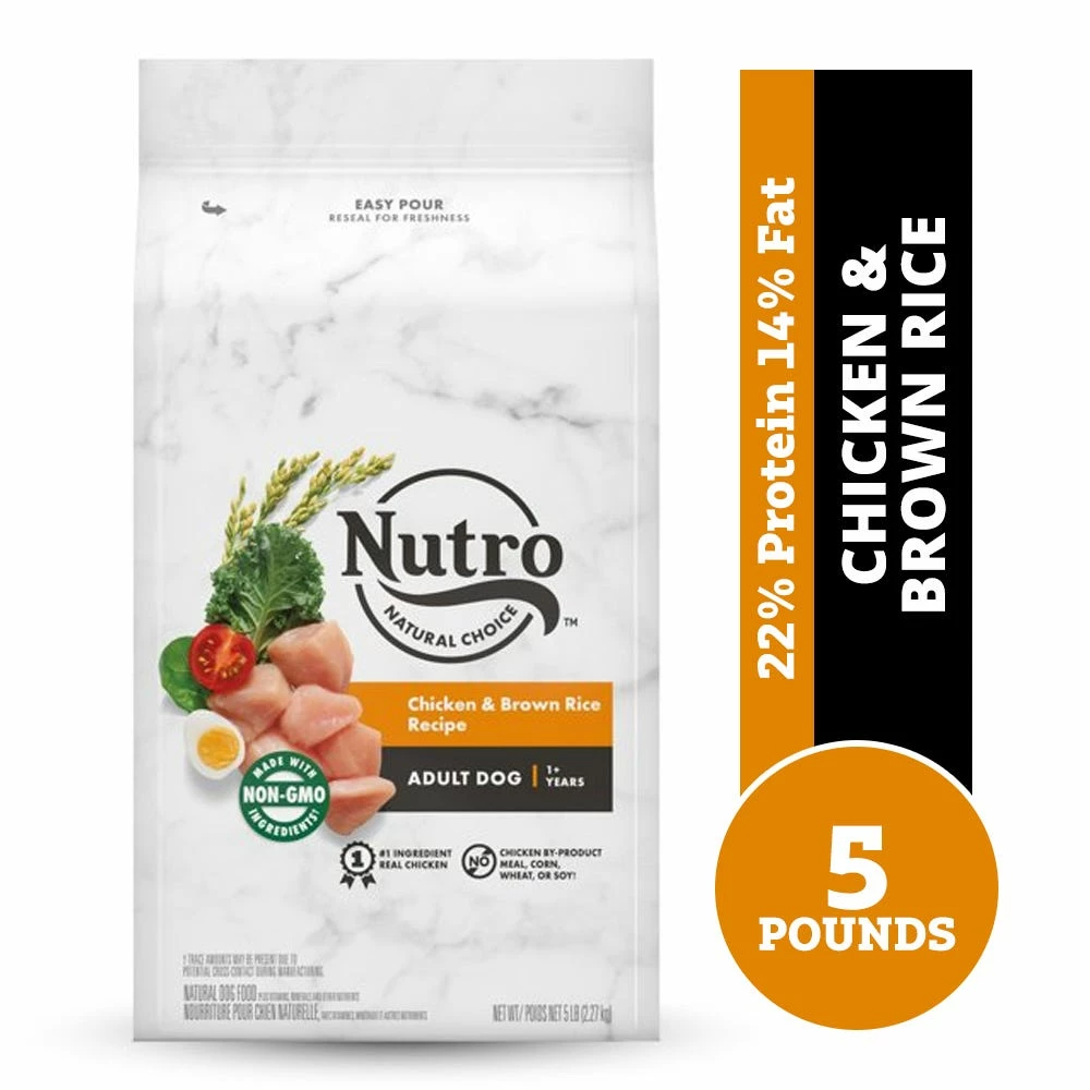 NUTRO™ NATURAL CHOICE™ Adult Chicken & Brown Rice Recipe Dog Food always starts with chicken as the first ingredient. NUTRO™ Food for Dogs follows THE NUTRO FEED CLEAN™ philosophy, and is made with Non-GMO ingredients† and no artificial flavors, colors or preservatives†. Our bags have a CLEAN NEW LOOK!