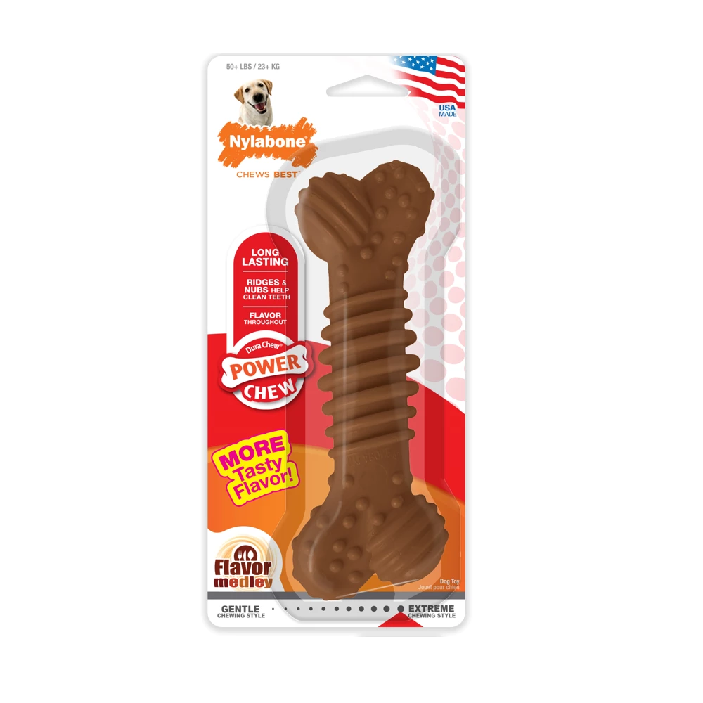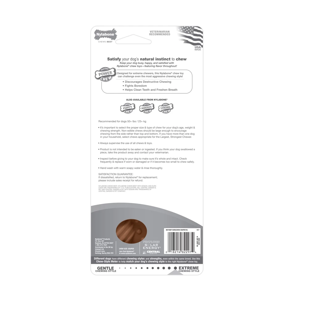 Designed for powerful chewers. Multi-textured for increased chewing appeal. Bristles raised during chewing help clean teeth and control plaque & tartar build-up. This chicken-flavored DuraChew is also made in the USA!