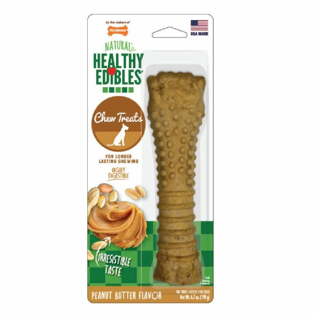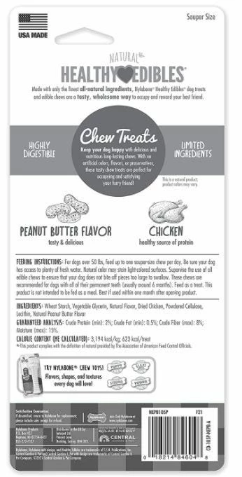 Give your paw-tner a treat that is both delicious and nutritious with Nylabone Healthy Edibles Peanut Butter Flavor Dog Chew. Made with natural ingredients and added vitamins and minerals, this chew does not contain any added salt, sugar or artificial preservatives. It is highly digestible and designed for dogs with all of their permanent teeth. To top it all off, the delicious peanut butter flavor will keep your furry friend engaged and content. Crafted with wellness in mind, Nylabone Healthy Edibles Peanut Butter Flavor Dog Chew has wholesome ingredients for pure pups.
