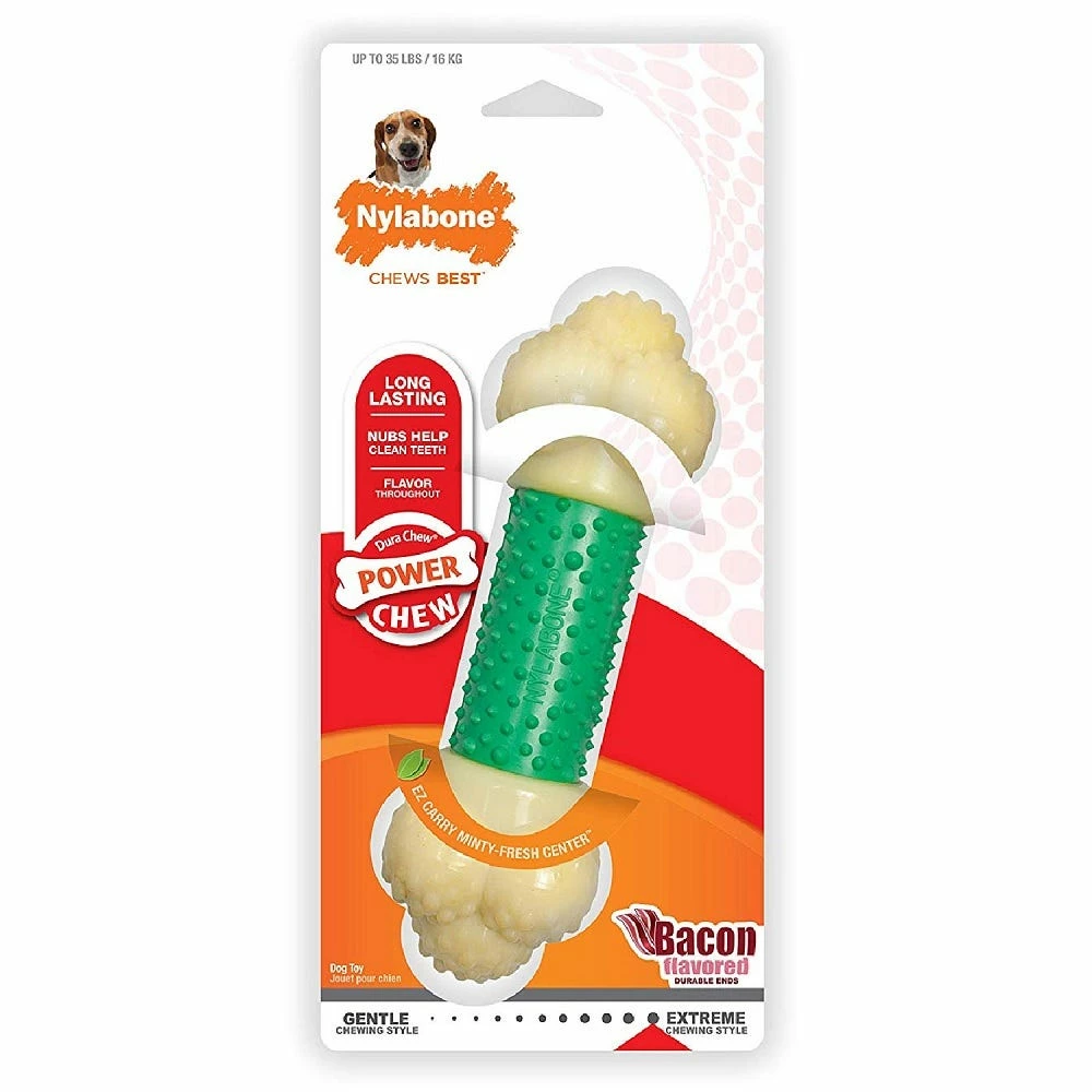 Designed so dogs can have a dog chew toy that’s soft enough for carrying and durable enough for chewing, the Power Chew Double Action Chew Toy is the perfect pastime for your powerful chewer! This long-lasting, durable dog toy keeps your furry friend entertained for hours and discourages destructive chewing. Plus, it supports doggy dental care by helping to clean teeth, control plaque and tartar, and massage gums while your furry friend chews. The rubber center has minty flavor to keep dogs’ breath fresh, while the durable ends have savory bacon flavor to keep dogs wanting more. Dogs love this entertaining toy, and pet parents love the fresh kisses it helps provide!
