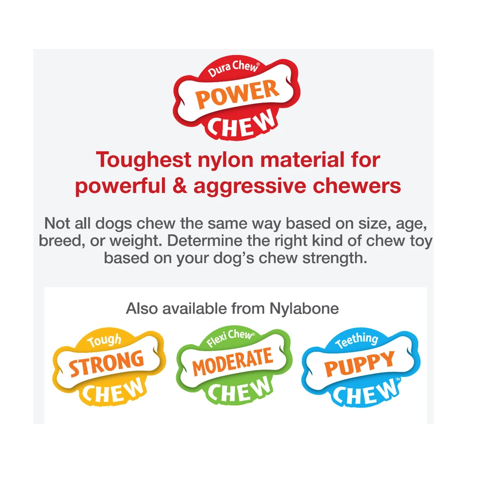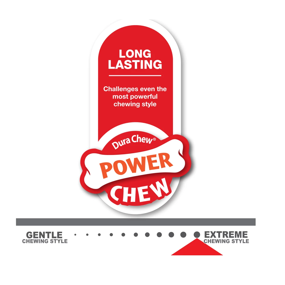 This Nylabone Power Chew Dura Chew Pro Action Dog Chew Toy gives your dog the dental care and chewing satisfaction he needs to stay healthy and happy. This bacon flavored chew toy has durable nylon ends made for powerful chewing and softer ridges in between, making it a dog dental chew toy that helps freshen breath, massage gums, and clean teeth with triple-cleaning action. A dental dog toy and chewing fun all in one!