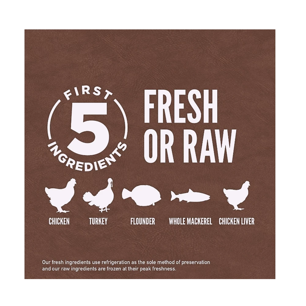 Provide your canine companion with peak nourishment from ORIJEN Regional Red Grain-Free Dry Dog Food. Your dog is an ancestral carnivore, which means he thrives on a biologically appropriate diet that’s packed with different types of whole animal ingredients. This scrumptious kibble features fresh or raw ranch-raised beef, wild boar, Boer goat and grass-fed lamb. Crafted with the most nutrient-dense and succulent parts of the prey, this recipe is also made with WholePrey animal ingredients, including organs and bone, delivering 85% quality animal ingredients. And this dog food is freeze-dried coated for the wag-worthy raw flavor dogs love!
