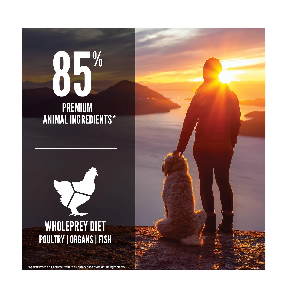 Provide your senior sidekick with peak nourishment from ORIJEN Senior Grain-Free Dry Dog Food. Your dog is an ancestral carnivore, which means he thrives on a biologically appropriate diet that’s packed with different types of whole animal ingredients. This scrumptious kibble is specially formulated to support lean muscle mass and weight maintenance in senior dogs. Crafted with the most nutrient-dense and succulent parts of the prey, this recipe is also made with WholePrey animal ingredients, including organs and bone, delivering 85% quality animal ingredients. And this dog food is freeze-dried coated for the wag-worthy raw flavor dogs love!