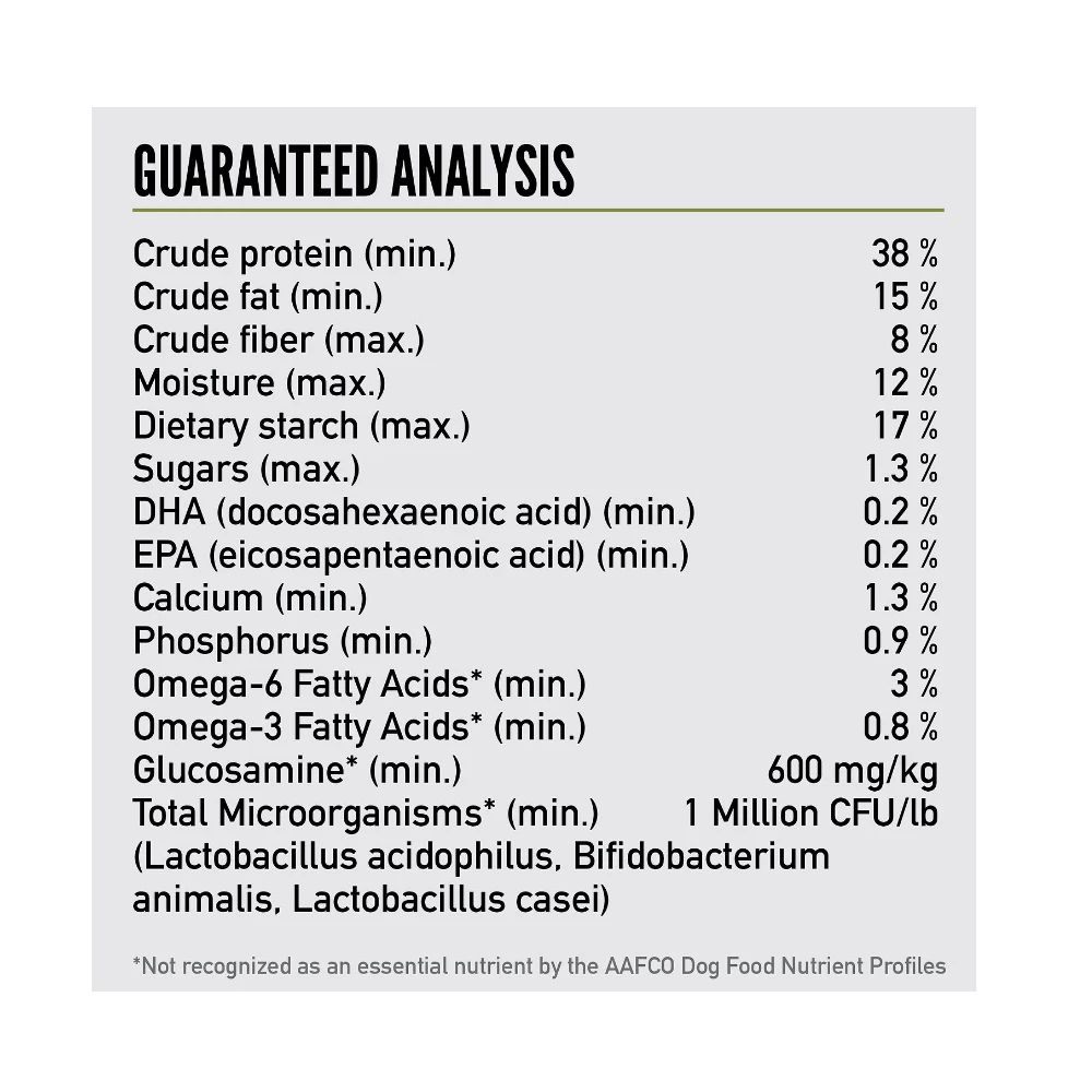 Caloric Content: 3,630 kcal/kg, 417 kcal/cup