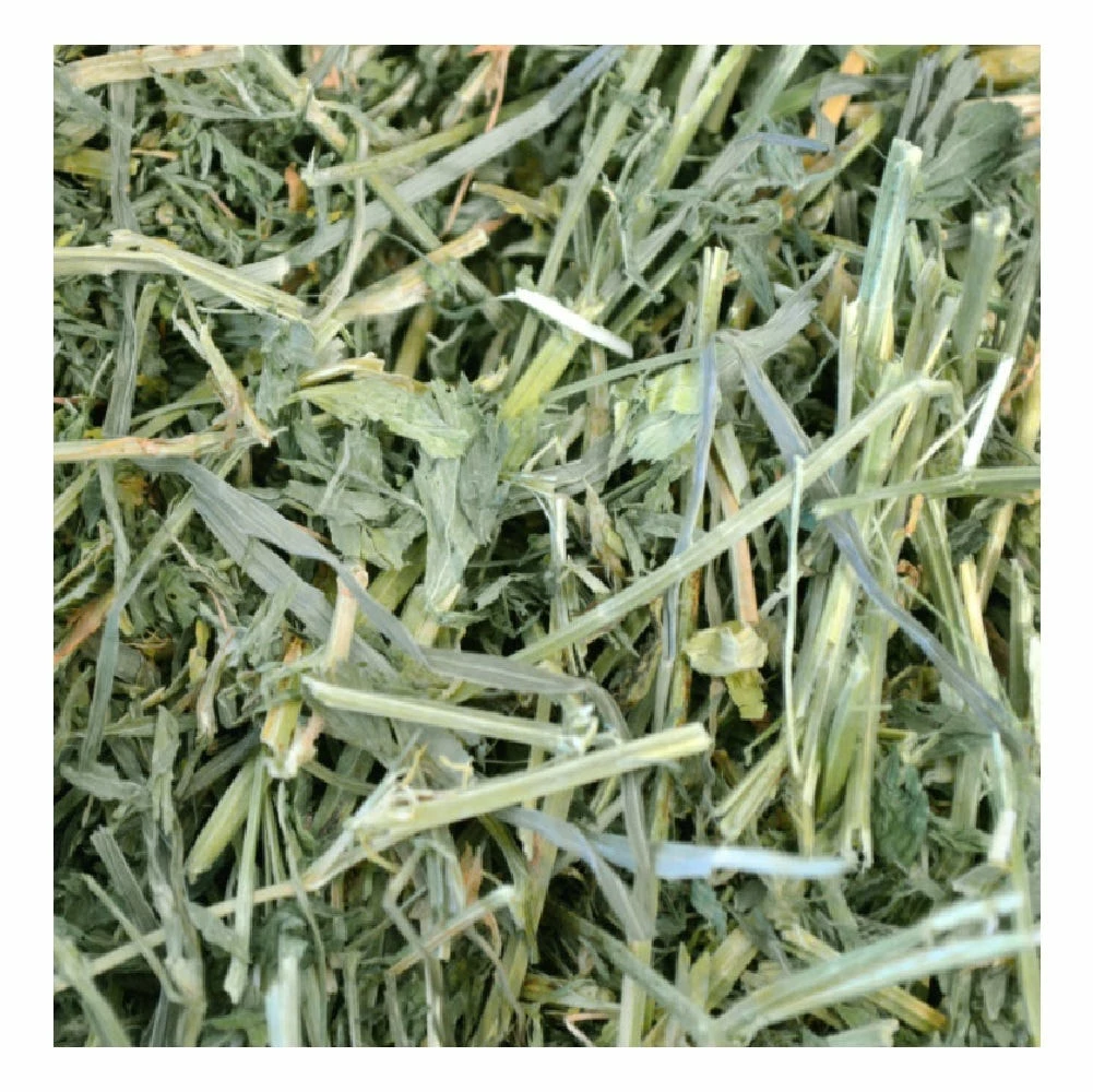100% Alfalfa Hay. Preservative and Additive Free. Loose Hay Contains Stems, Leaves, and Limited Seed Heads.
