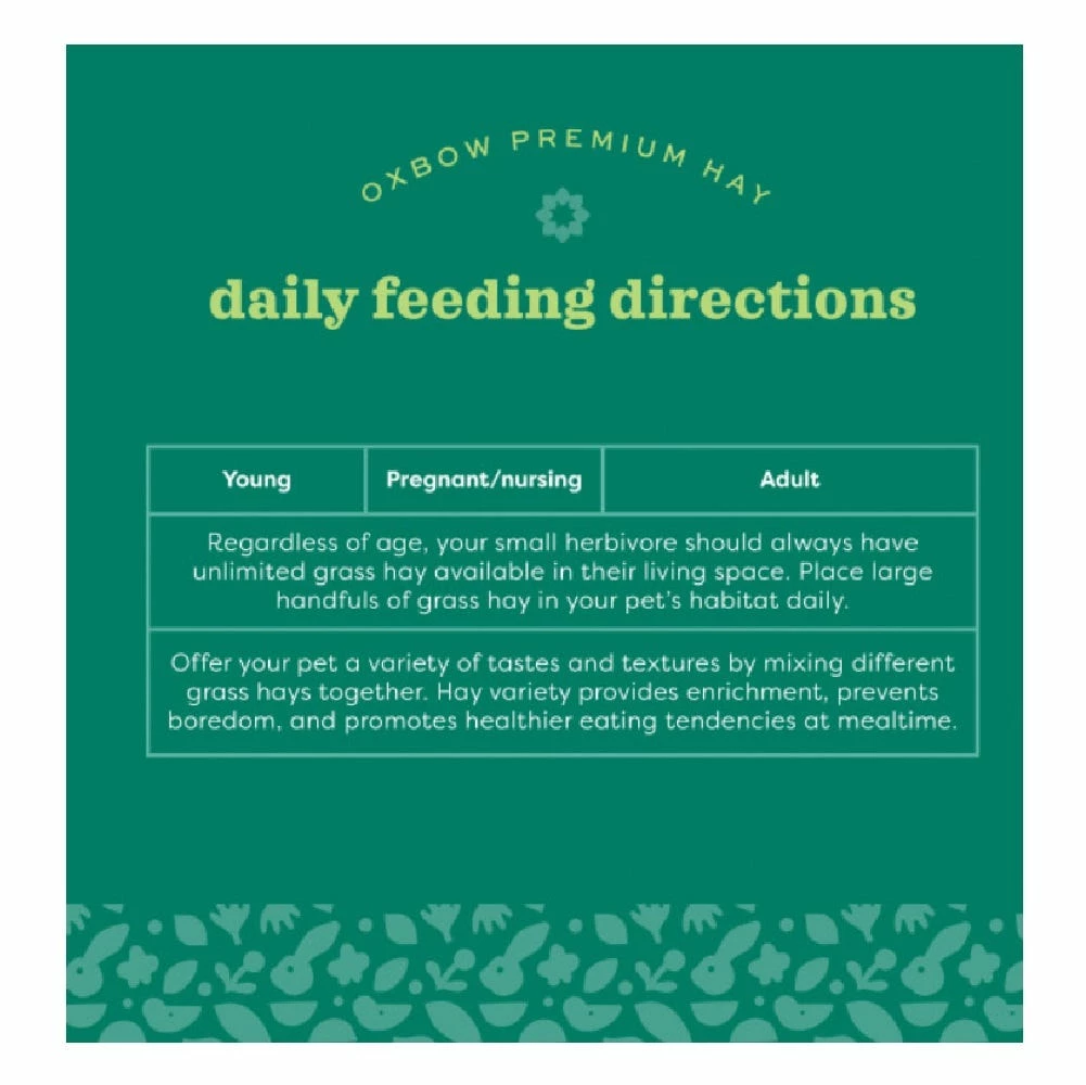 Feed your growing small pet hay that is high in fiber, protein and calcium with Oxbow Alfalfa Hay Small Animal Food. Small pets including guinea pigs, rabbits and chinchillas, need hay to help aid in digestion and keep their teeth trim. Oxbow Alfalfa Hay Small Animal Food, a high-fiber legume hay, contains more crude protein, digestible energy and calcium levels than in grass hay, making it ideal for pets 6 months and younger and nursing females. Its succulent taste stimulates appetites and helps ill pets gain weight. Oxbow Alfalfa Hay Small Animal Food makes an excellent treat for healthy adults, but because of its high fiber content, should be given in small pinches only.