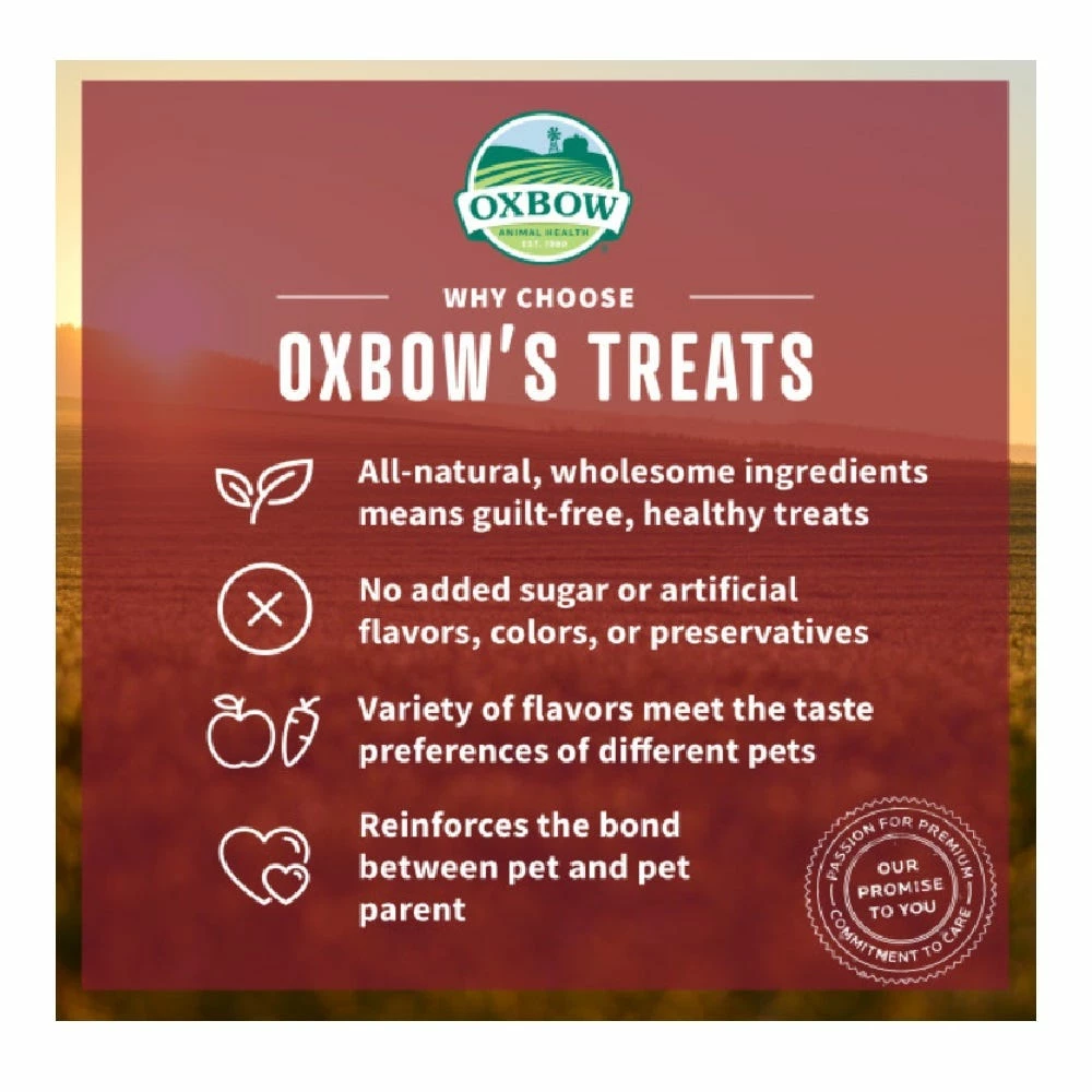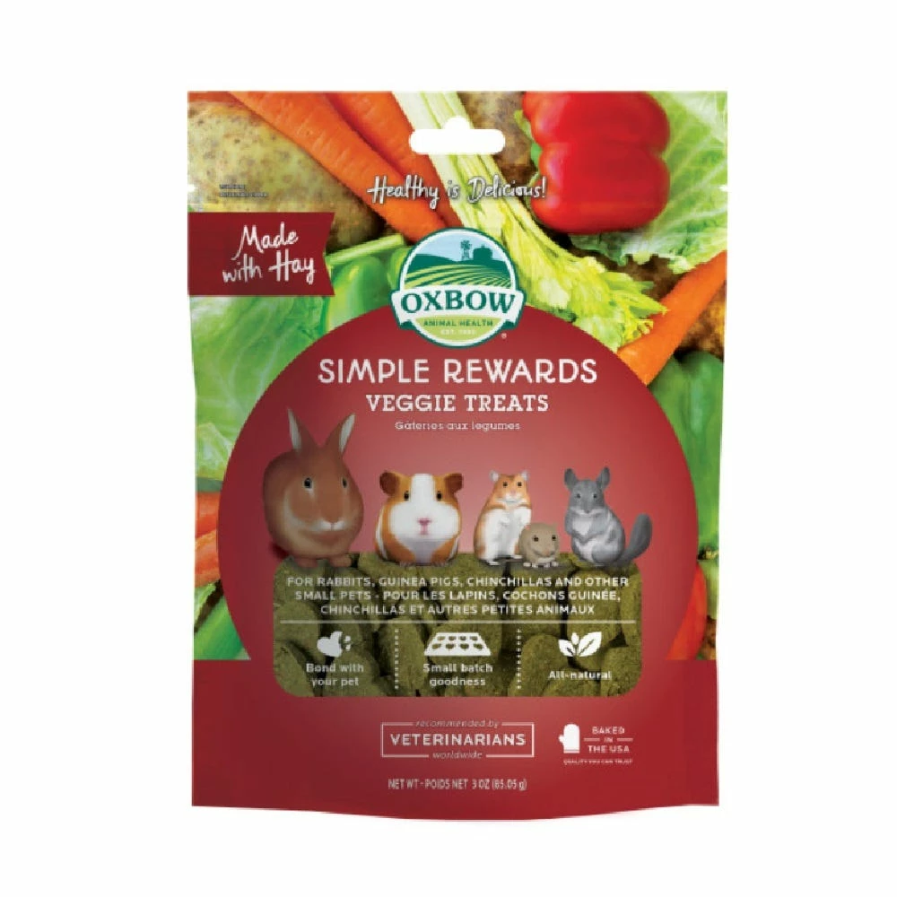 From the garden to your pet – veggie goodness from Oxbow Animal Health! The wholesome, oven baked blend of vegetables and greens in Oxbow Veggie Treats translates into a tasty, enriching reward for your pet. Our treats provide the nutritional balance animals would find in their natural habitats and help add healthy variety to your pet’s diet. Simple Rewards allows you to give your animal a healthy, delicious treat you can both feel good about.
