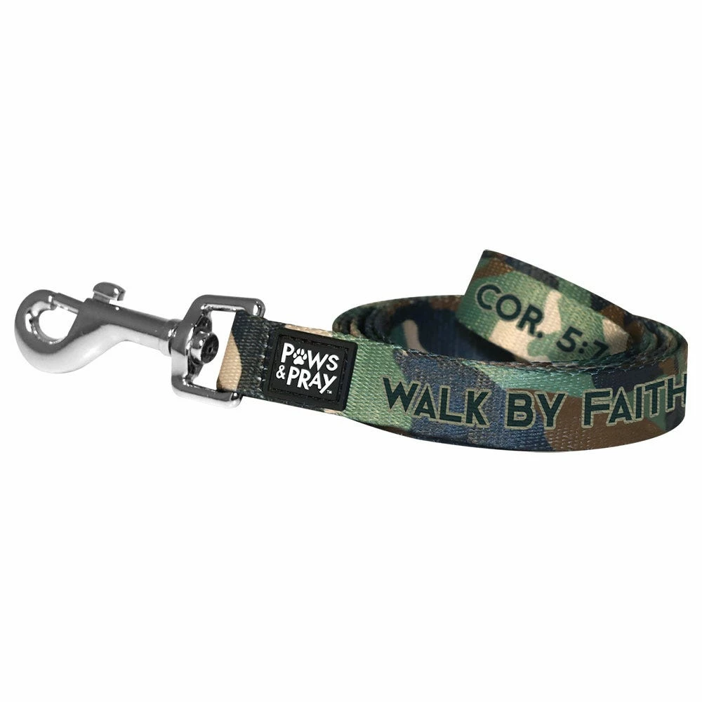 Walk the walk with this rugged “Walk By Faith Camo” Leash by Paws & Pray™ in Camo. Our furry friends are a beautiful example of loyalty and faith; let them serve as inspiration for your own faith in the Lord. On the trail or around the block, this cool leash will give your pet the style edge.