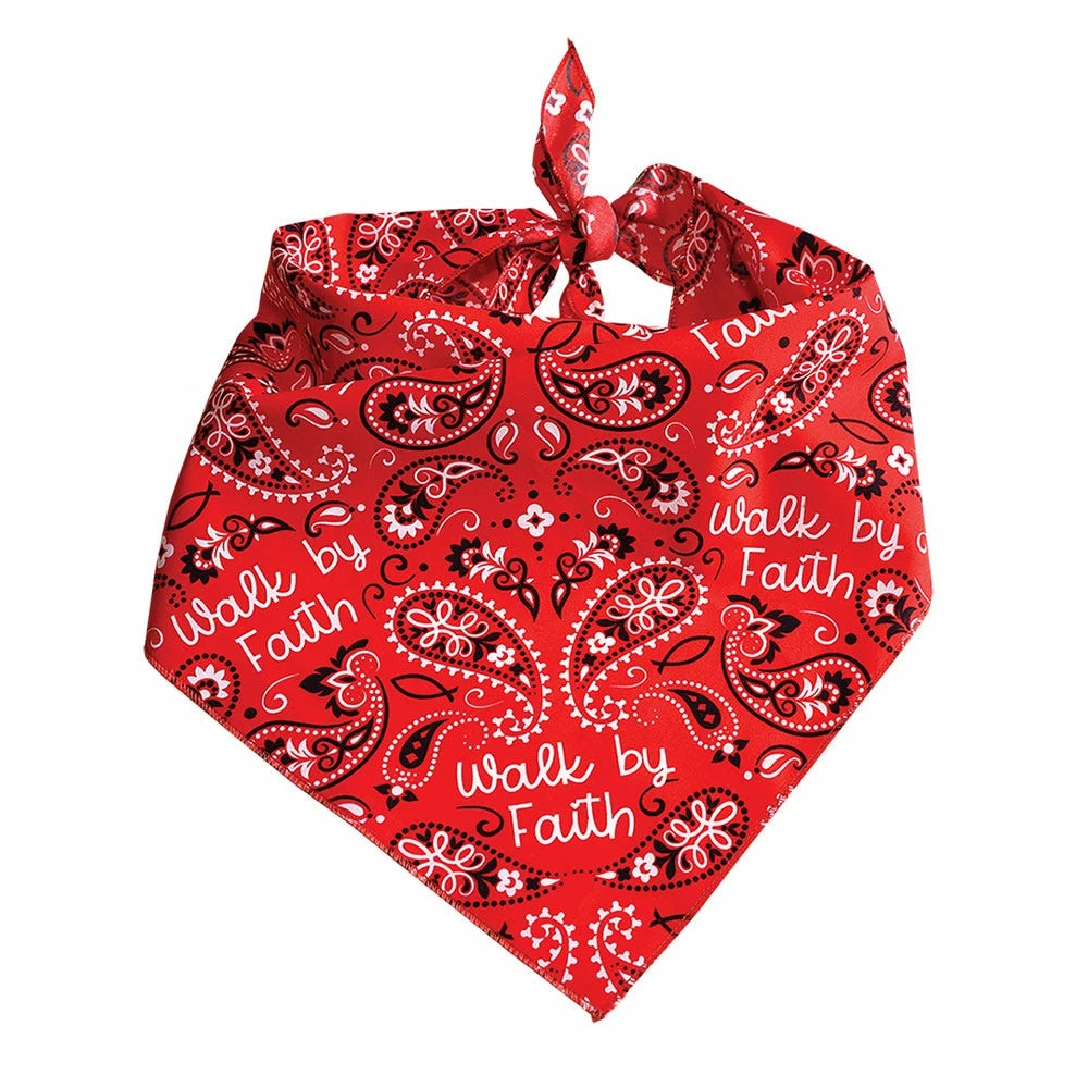 Remind yourself to walk the walk with this eye-catching, inspirational “Walk By Faith Bandana” Paws & Pray® Pet Bandana in Red. Crafted of 100% breathable cotton, this bandana is available in SM/MD or LG/XL and is adjustable to fit most pets.