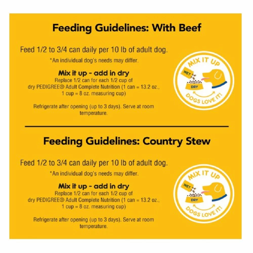 - Contains twelve (12) 13.2-oz. cans of Pedigree Choice Cuts in Gravy Combo Pack Beef & Country Stew Wet Dog Food