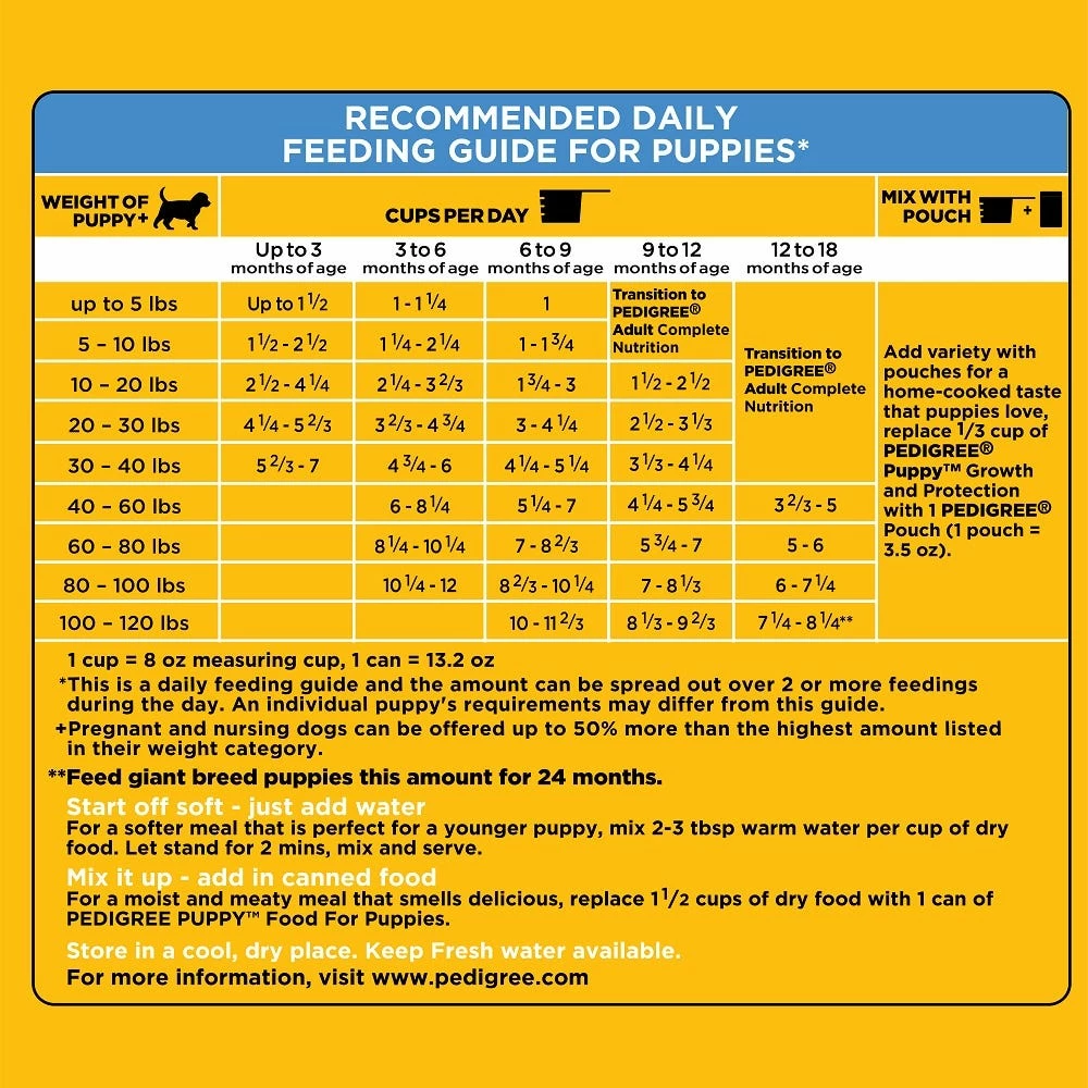 *Feed giant breed puppies this amount for 24 months.