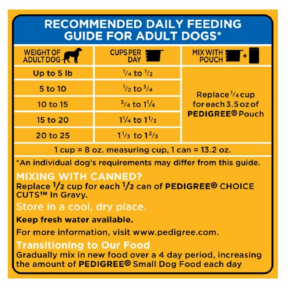 - Contains one (1) 15.9 lb. bag of PEDIGREE Small Dog Complete Nutrition Adult Dry Dog Food, Roasted Chicken, Rice & Vegetable Flavor