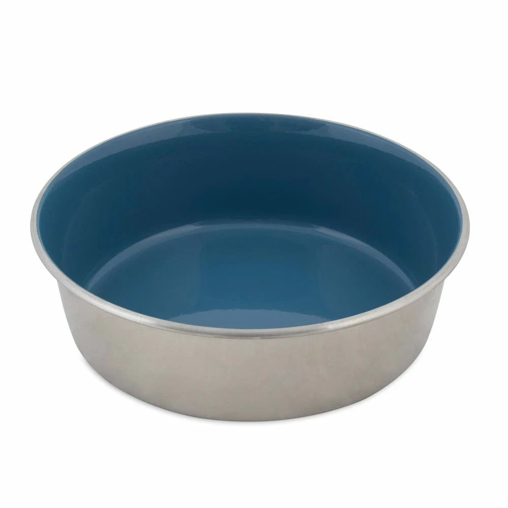 Update your pet’s feeding and watering area with Petmate® Painted Stainless Steel Bowls. Designed with durability in mind; these pet feeding and watering bowls are made with stainless steel that is durable enough for indoor or outdoor use and rust resistant. Available in three sizes; these bowls are painted in beautiful neutral cool colors and will not crack over time. Unlike plastic; stainless steel bowls do not absorb food particles and are dishwasher safe for easy cleaning. The non-skid feet on the bottom on each bowl keeps it in place as your pet eats or drinks from it.