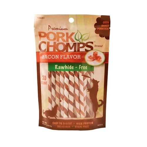 - When dogs switch from ordinary rawhide to Pork Chomps, the risk of developing an intestinal blockage is greatly reduced