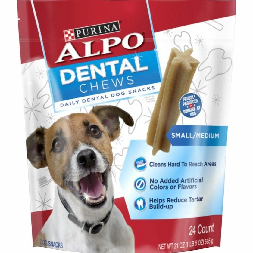 Clean Teeth. Great taste. It’s just that simple. Open up a bag of ALPO Dental Chews and share a little goodness with your dog. Each star-shaped chew treat is made with no added artificial colors or flavors. Just a tasty, healthy, teeth-cleaning snack to help keep your dog’s mouth fresh and his smile bright.