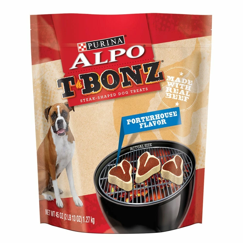 Put some sizzle in your dog’s day with ALPO T-Bonz Porterhouse Flavor Dog Treats. Made with real beef and tasty porterhouse steak flavor, these grill-inspired treats have all the fixings needed to engage and excite him on a whole new level. Just pull one of these soft, meaty medallions out of the bag and let the drooling begin!