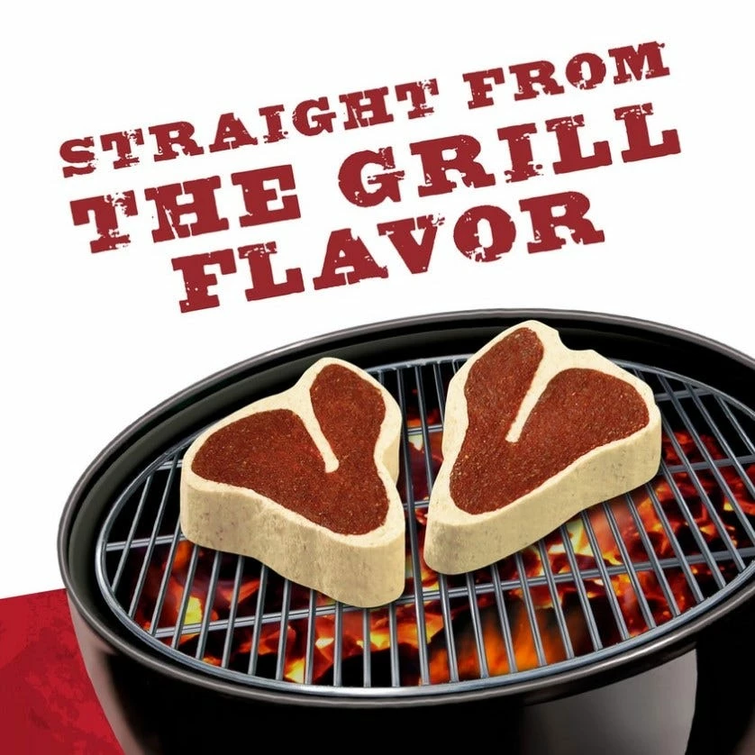- Steak-shaped treats, made with real beef and porterhouse flavor