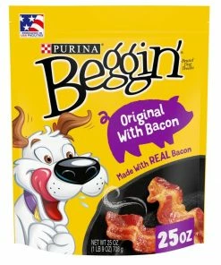 - Dogs don’t know it’s not bacon! Take this resealable pouch along on all of your adventures with your four-legged friend to capture his attention with a Beggin’ Strip dog treat wherever you go together