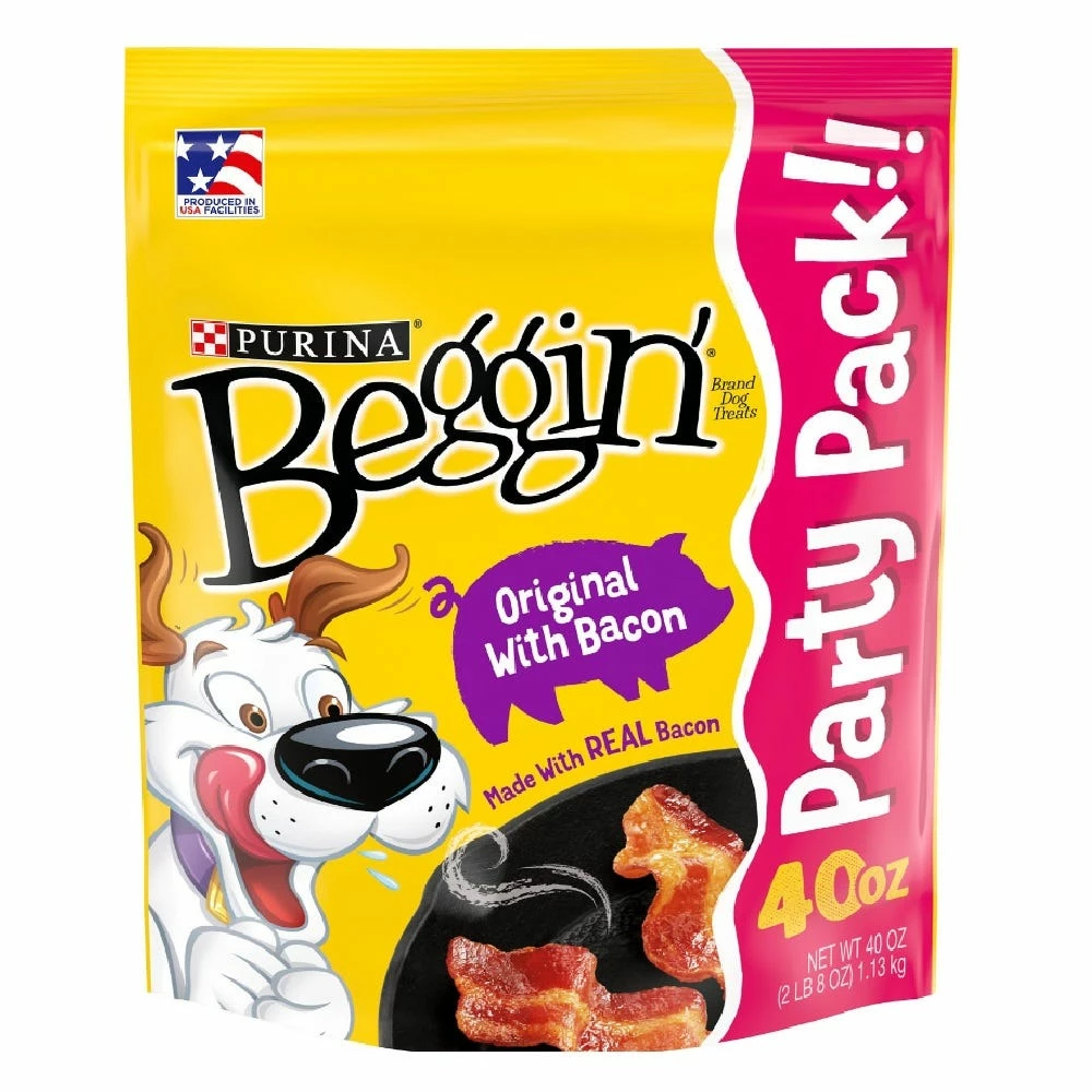 - Dogs don’t know it’s not bacon! Take this resealable pouch along on all of your adventures with your four-legged friend to capture his attention with a Beggin’ Strip dog treat wherever you go together
