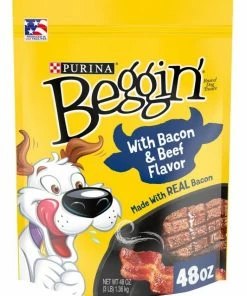 - Give your dog the irresistible combo of bacon and beef flavor in these soft dog strips. Meaty, bacon-y and oh-so-yummy, these Beggin’ dog treats combine two of your pal’s favorite flavors into one enticing strip