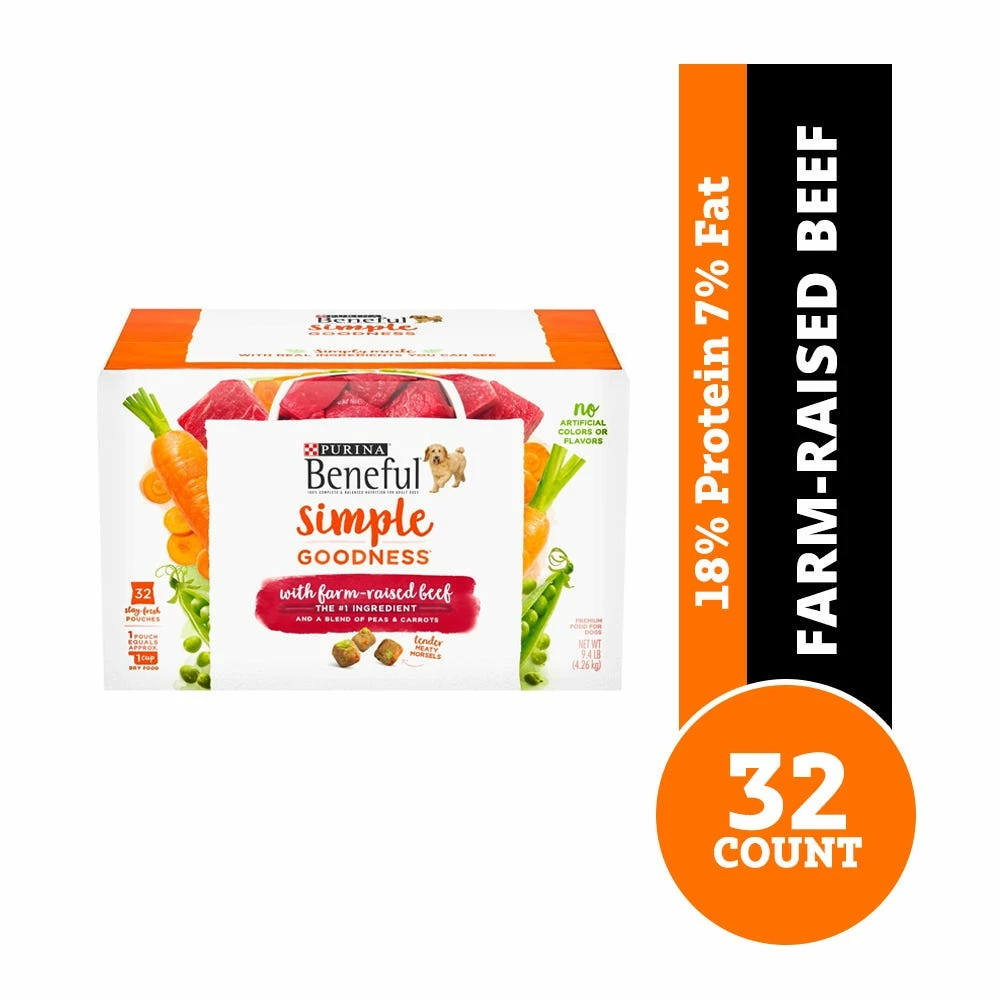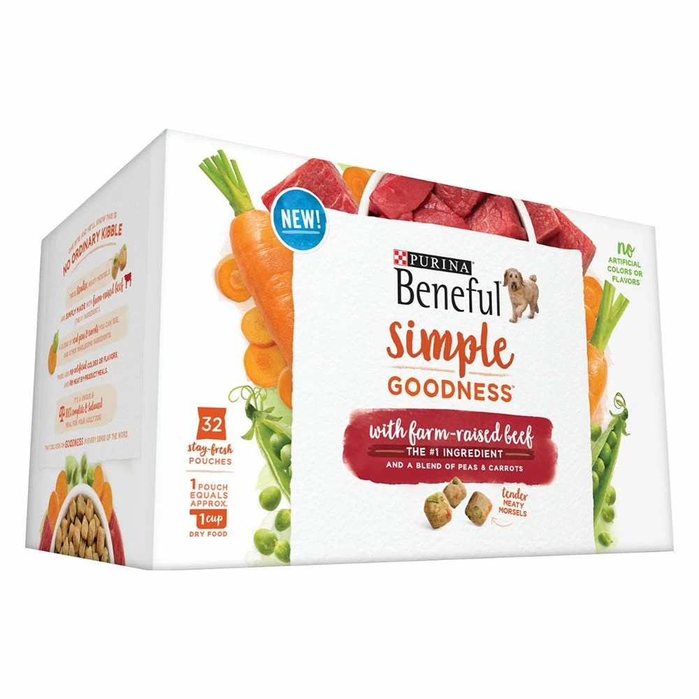 Satisfy your precious pup’s taste buds with the tempting texture and delicious taste of Purina Beneful Simple Goodness With Farm-Raised Beef Dry Dog Food. These, tender, meaty morsels feature real farm-raised beef as the very first ingredient, along with real peas and carrots you can actually see in every bite. In addition to wholesome, lip-smacking ingredients, this high-quality recipe is formulated with a variety of essential vitamins and minerals for paw-sitively complete and balanced nutrition that will leave your best friend wagging her tail for more.