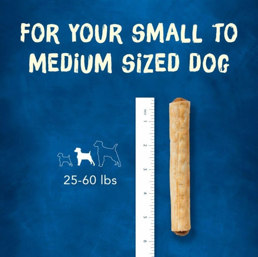 For a meaty reward that keeps your dog both occupied and excited, give him Purina Busy Rollhide with Real Beefhide small/medium adult dog chew treats. He’ll stay enthralled with this savory snack from beginning till end thanks to its uniquely rolled design, especially given its real beefhide exterior that delivers long-lasting enjoyment. Ideal for small- to medium-sized dogs, the fun and flavor of each chew bone is sure to captivate your faithful companion. Watch his tail wag with prolonged enthusiasm while working through the challenge of its basted outer layer, which also adds a savory touch he won’t be able to resist. Plus, you can take comfort knowing he’s getting big, beefy tastes he craves, but with no artificial colors or flavors added. Encourage your dog’s natural instinct to chew every time you offer him one of these Busy Rollhide dog treats, and feel satisfied that he’s getting a reward that piques his playful, curious spirit.