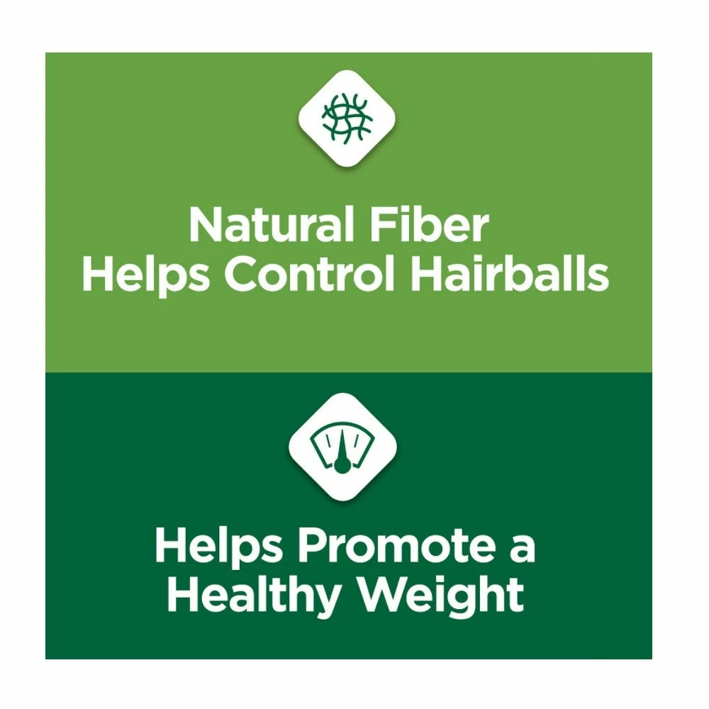 - A natural fiber blend in every serving helps control hairballs and promotes your furry friend’s healthy digestion