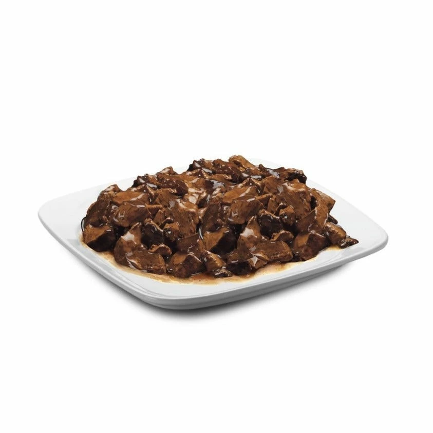 - Chunks of meat in a scrumptious gravy tempt even the pickiest of dogs to the bowl